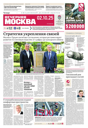 «Вечерняя Москва» — ежедневная российская вечерняя газета, старейшее из вечерних изданий в России, учрежденное в 1923 году. Выходит пять дней в неделю, кроме субботы и воскресенья. Отличается тем, что рассказывает о событиях еще не завершившегося дня. Оперативно освещает хронику и особенности жизни Москвы, охватывает все слои общества и большинство профессиональных и возрастных групп читателей.Издание представлено тремя выпусками – утренним ежедневным, вечерним (выходит три раза в неделю), еженедельным (выходит по четвергам).